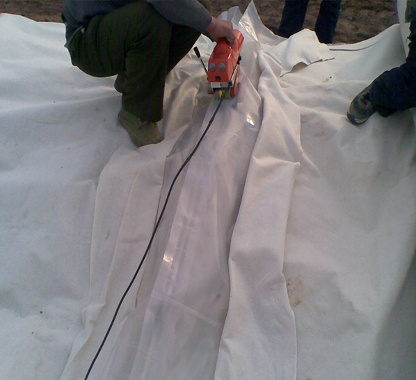 復(fù)合土工膜是在薄膜的一側(cè)或兩側(cè)貼上土工布,形成復(fù)合土工膜。其形式有一布一膜、二布一膜、兩膜一布等。根據(jù)多年實(shí)踐證明,土工膜厚度不小于0.25mm,太薄可能產(chǎn)生氣孔,且易在施工中受損而降低防滲效果。土工膜施工中,特別要注意做到鋪設(shè)不宜過緊,不得打皺,拼接要牢固。要嚴(yán)格按技術(shù)規(guī)范施工,把好準(zhǔn)備、鋪設(shè)、拼接、檢驗(yàn)和回填等五道質(zhì)量關(guān)。由于復(fù)合土工膜良好的防滲效果,目前,寶雞峽灌區(qū)節(jié)水改造與續(xù)建配套項(xiàng)目建設(shè)中,大量采用該材料,受到了設(shè)計(jì)、建設(shè)單位的廣泛好評(píng)。