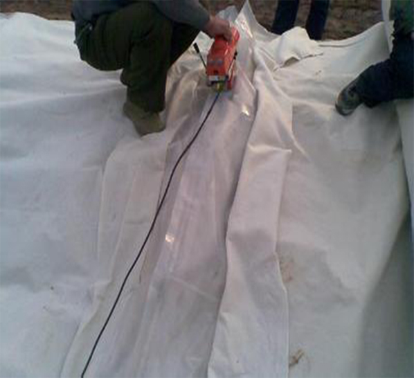5、施工時(shí),應(yīng)避免石塊,重物直接砸在土工膜上、要邊施工、邊鋪設(shè)膜、邊覆蓋保護(hù)層。