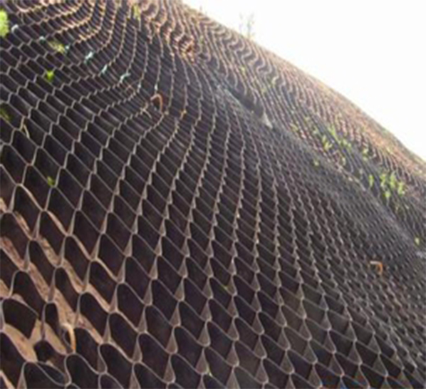 土工格室是由高強(qiáng)度的HDPE或PP共聚料寬帶,經(jīng)過強(qiáng)力焊接或鉚接而形成的一片網(wǎng)狀格室結(jié)構(gòu)。它伸縮自如,運(yùn)輸時(shí)可縮疊起來,使用時(shí)張開并又充填土石或混凝土料,構(gòu)成具有強(qiáng)大側(cè)向限制和大剛度的結(jié)構(gòu)體。它可用來做為墊層,處理軟弱地基增大地基的承載能力,也可鋪設(shè)在坡面上構(gòu)成坡面防護(hù)結(jié)構(gòu),還可以用來建造支擋結(jié)構(gòu)等。