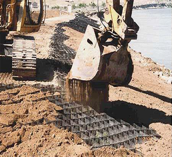 3、較高的側(cè)向限制和防滑,防變形、有效的增強(qiáng)路基的承載能力和分散荷載作用。