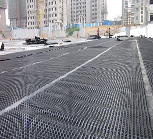 良好的排水系統(tǒng)對土建的施工周期及構筑物的正常使用和壽命具有重要的作用。排水板與多孔滲水管組成一個有效的疏排水系統(tǒng),圓柱形的多空排水板與土工布也組成一個排水系統(tǒng),從而形成一個具有滲水、貯水和排水功能的系統(tǒng)