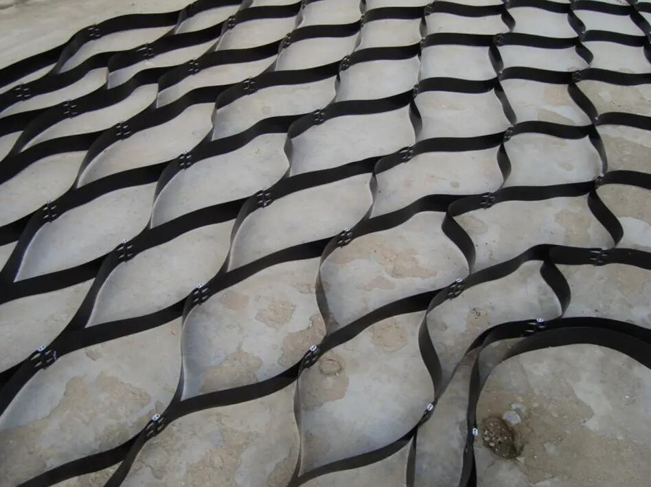土工格室是由高強(qiáng)度的HDPE或PP共聚料寬帶,經(jīng)過強(qiáng)力焊接或鉚接而形成的一片網(wǎng)狀格室結(jié)構(gòu)。它伸縮自如,運(yùn)輸時可縮疊起來,使用時張開并又充填土石或混凝土料,構(gòu)成具有強(qiáng)大側(cè)向限制和大剛度的結(jié)構(gòu)體。它可用來做為墊層,處理軟弱地基增大地基的承載能力,也可鋪設(shè)在坡面上構(gòu)成坡面防護(hù)結(jié)構(gòu),還可以用來建造支擋結(jié)構(gòu)等。