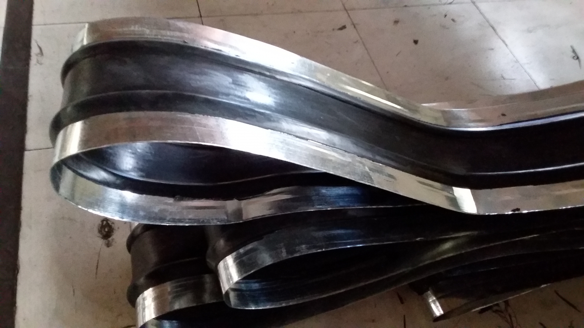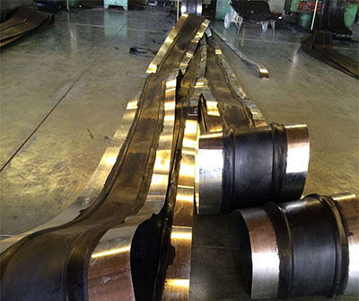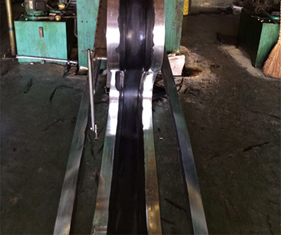 三、工藝流程:我們可以先將經(jīng)過(guò)先期處置的鍍鋅鋼帶拔出橡膠兩頭硫化成形,兩者之間的粘結(jié)力的結(jié)實(shí)性,具有分明防滲止水方面的效果。鋼邊止水帶的兩頭橡膠體在構(gòu)造變形時(shí)被緊縮、拉伸、變形,而起到密封止水作用;鍍鋅鋼帶與混凝土有著良好的粘附性,不易零落和松動(dòng),使止水帶能接受較大的拉力和扭力。在施工中由于混凝土澆筑時(shí)的宏大振動(dòng)力和不易固定,會(huì)使普通橡膠止水帶發(fā)生移位、扯離、改變而呈現(xiàn)松動(dòng)和零落,致使在水壓較大的狀況下會(huì)發(fā)生滲漏景象,而采用鋼邊橡膠止水帶時(shí),由于鋼帶與混凝土、鋼帶與橡膠之間不會(huì)發(fā)生新的滲漏縫。